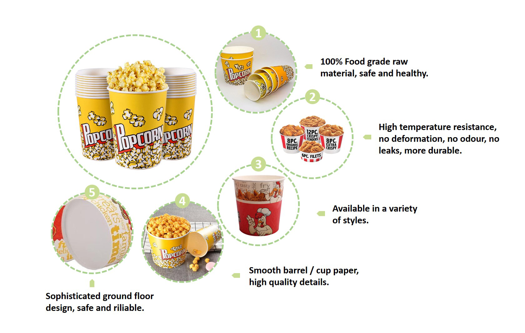 اسم المنتج: | دلو من ورق الدجاج المقلي | نوع الورق: | تصفيح PE ، بطانة PLA ، طلاء PBS |