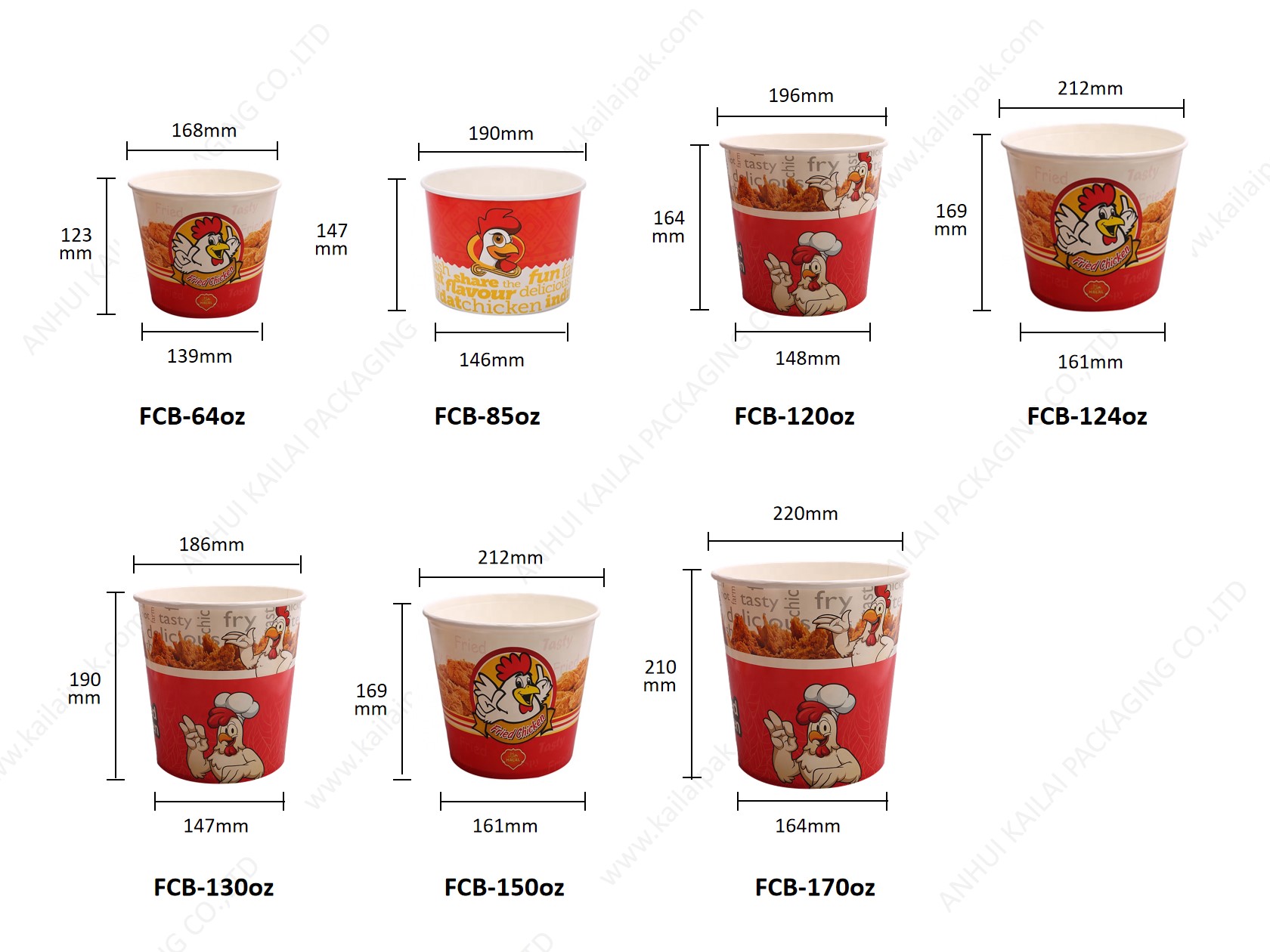 | FCB-130 أوقية | 130 أوقية | 130 أونصة دلو من ورق الدجاج المقلي | 186 * 147 * 190 | 50 قطعة * 4 حقيبة | 39 * 39 * 61 | 733 |