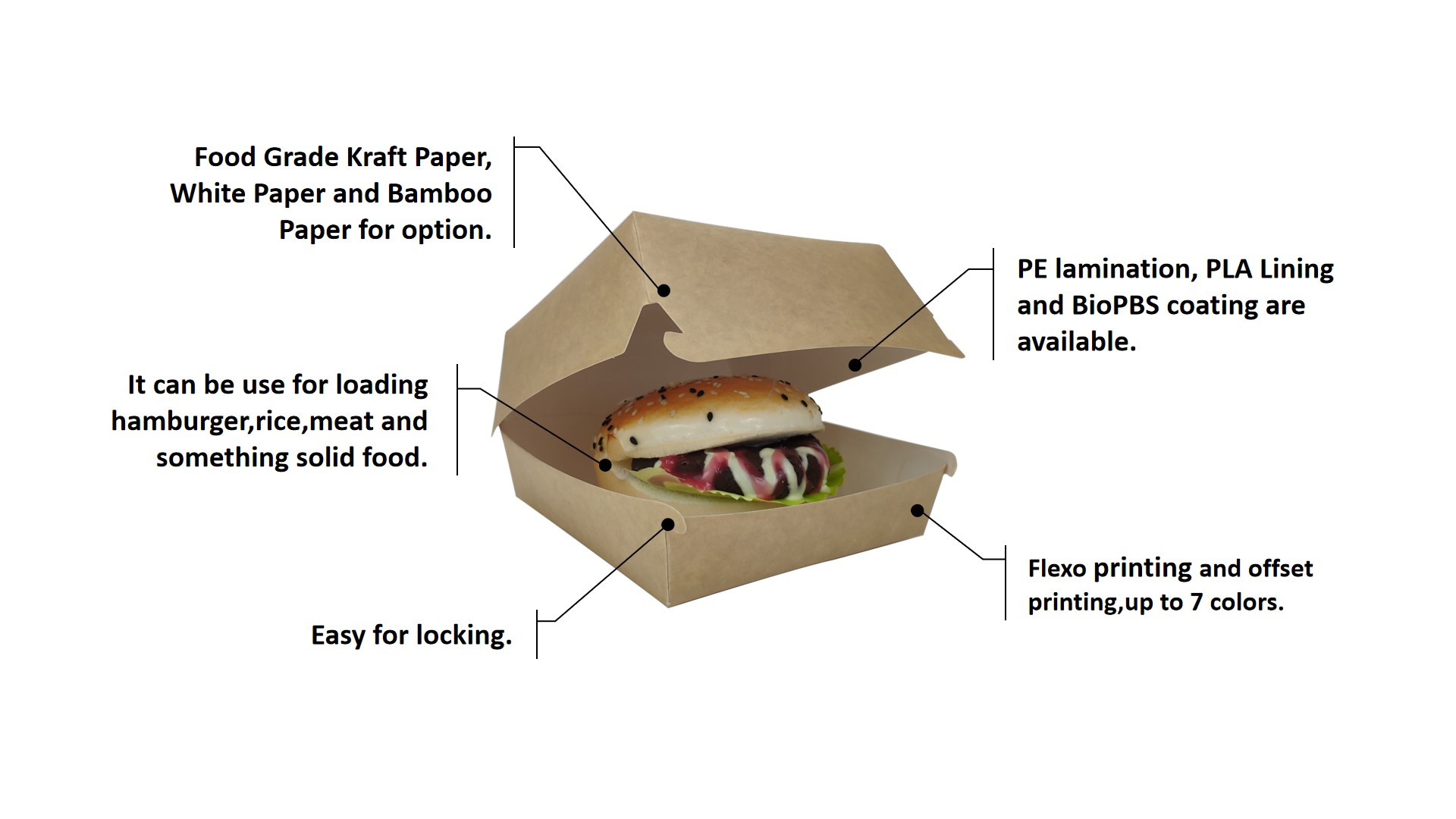 Material :Grado alimenticio, papel blanco.& papel kraft& papel de bambú& papel de bagazo con revestimiento de plástico