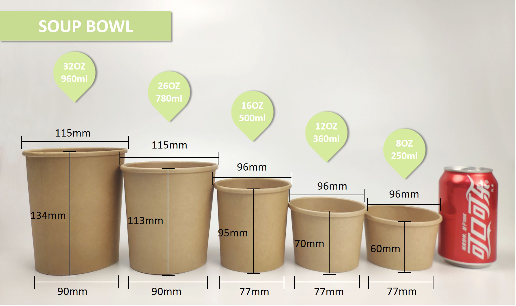 | SB-26oz | 26 onces bol en papier à soupe | 115*90*113 | 25 pièces * 20 | 500 | 58,5 | 47 | 32,5 | 750 |