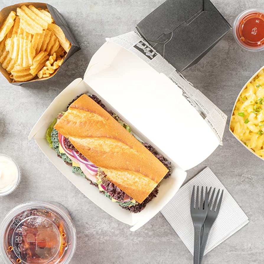 Easily customize our take-out boxes by adding your company logo, icon, label, and/or sticker.