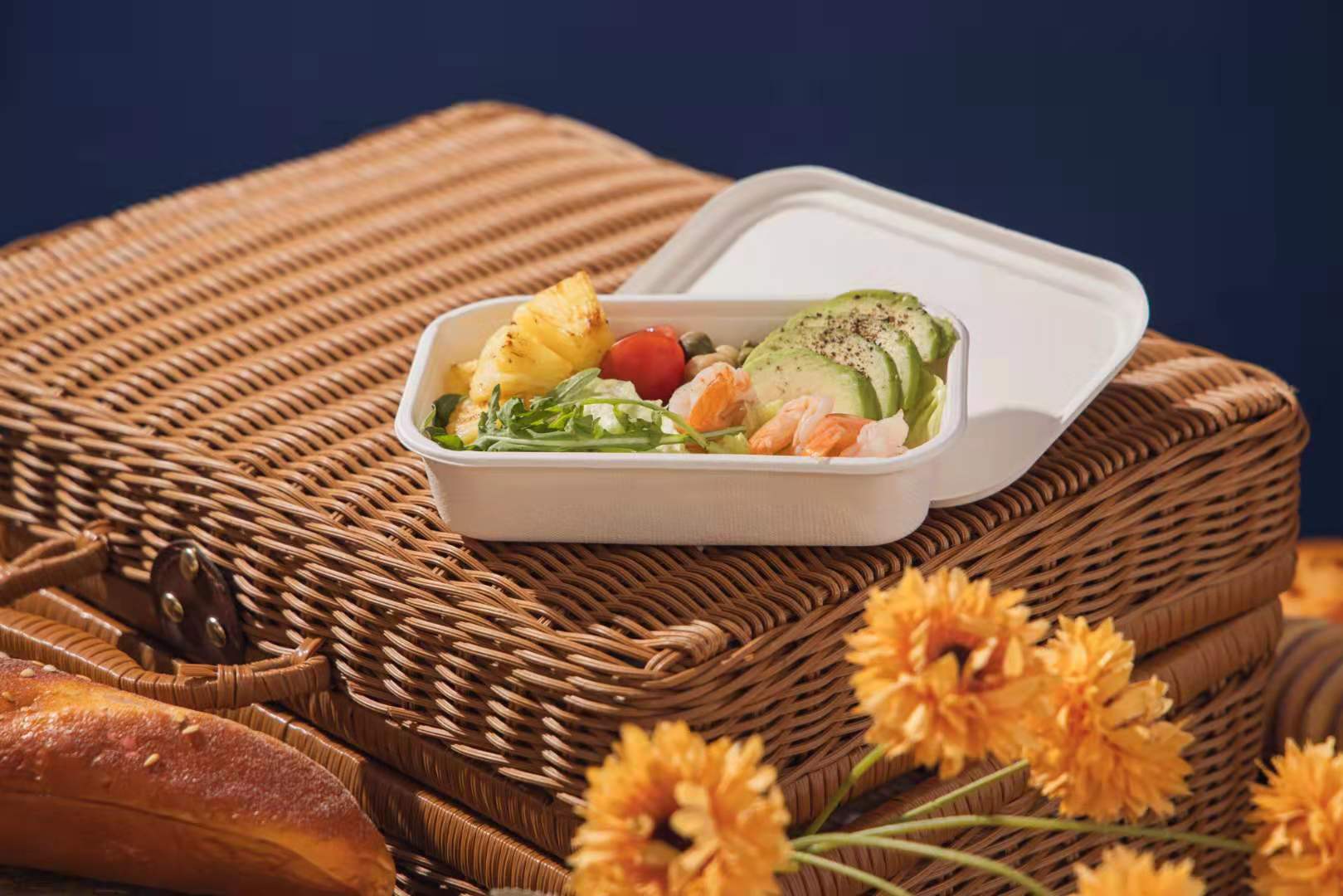 Feature : Home compostable, bagasse bowl with lid